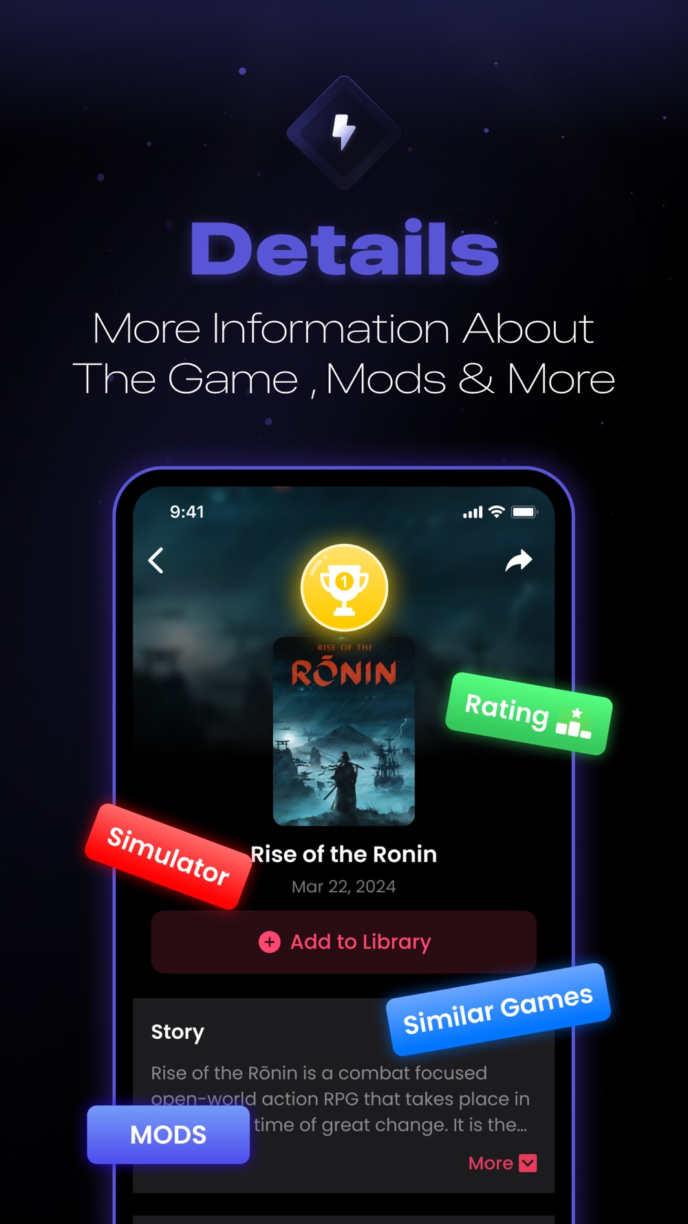 • Access detailed game information like storyline, videos, genres, and mods for informed decisions.