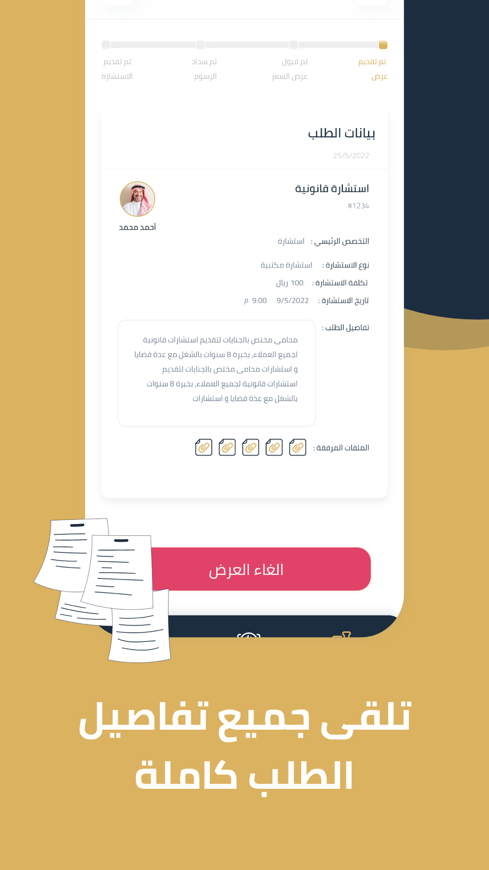 كما نود أن نفيدك بأن المنصة تسعى لتقديم كافة الخدمات القانونية والمحاسبيه بأفضل المعايير والممارسات في قطاع خدمات القانون والمحاسبه.