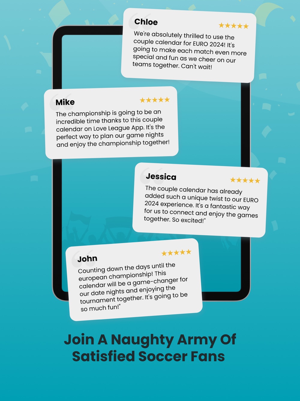 Over 2.5 Million lovers worldwide have enjoyed the thrilling connection our Scratch Adventure challenges provide! This year, we’re taking it up a notch with our Soccer Calendar Game for Couples, inviting new couples to join in the erotic adventure. Here’s what enthusiasts are saying: