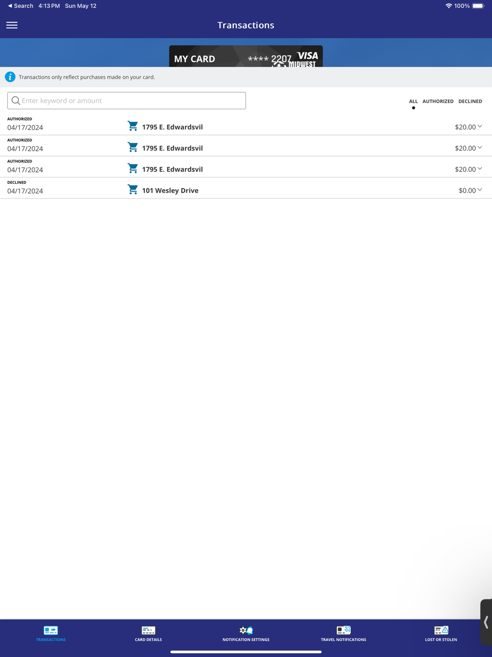 • View recent and pending transactions made on your Midwest Members CU cards.