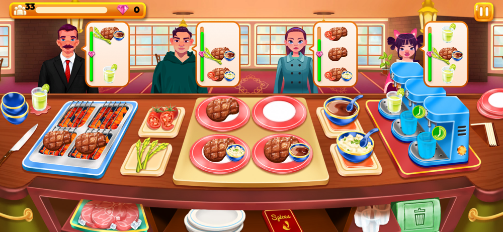 *Upgrade your kitchen utensils so that they serve more customers and save time, preventing level failure and progressing to the next level.