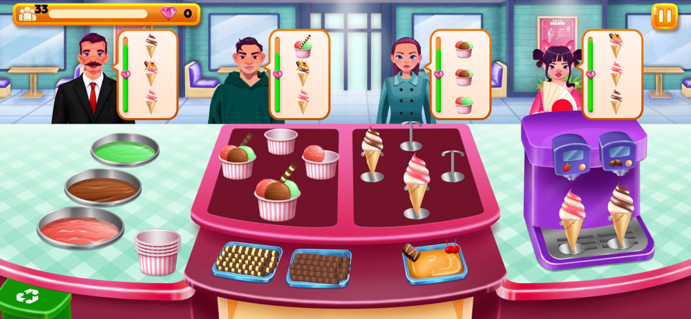 *Complete the level to earn diamonds by serving before time runs out and enjoy the game!