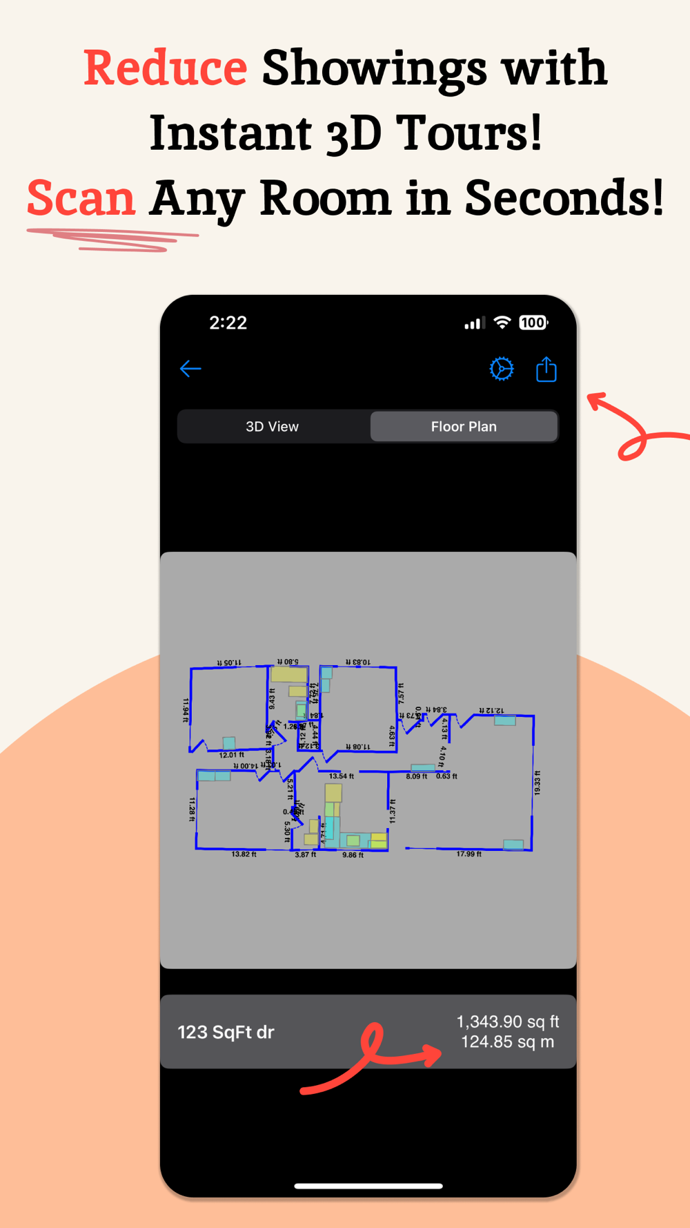 Quick Room Scanning: Forget about cumbersome manual measurements. Our advanced scanning technology lets you capture the square footage of any space instantly. Just scan the room, and your work is done.
