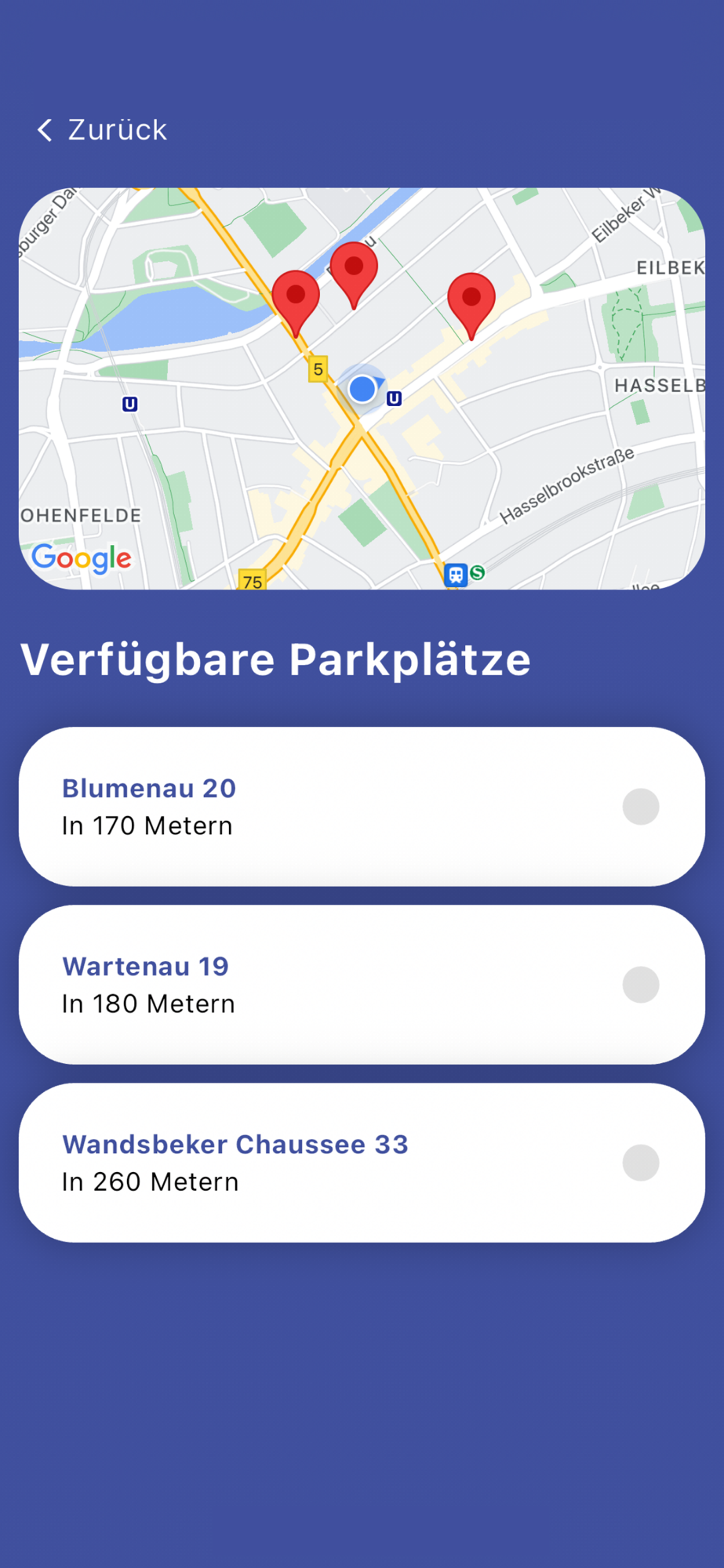 Melden: Wenn du einen freien Parkplatz entdeckst, melde ihn einfach in der App. Dadurch hilfst du anderen Nutzern, einen Parkplatz zu finden, und trägst dazu bei, die Parkplatzsuche für alle zu erleichtern.