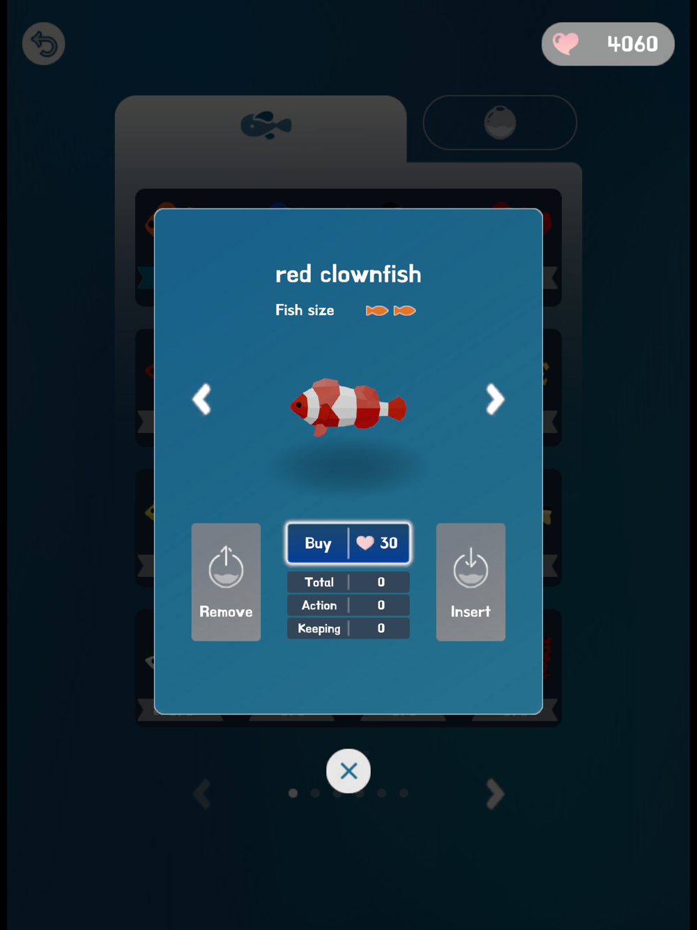 You can decorate the fish tank with the hearts you get by solving the puzzle and put the fish you want into the tank.