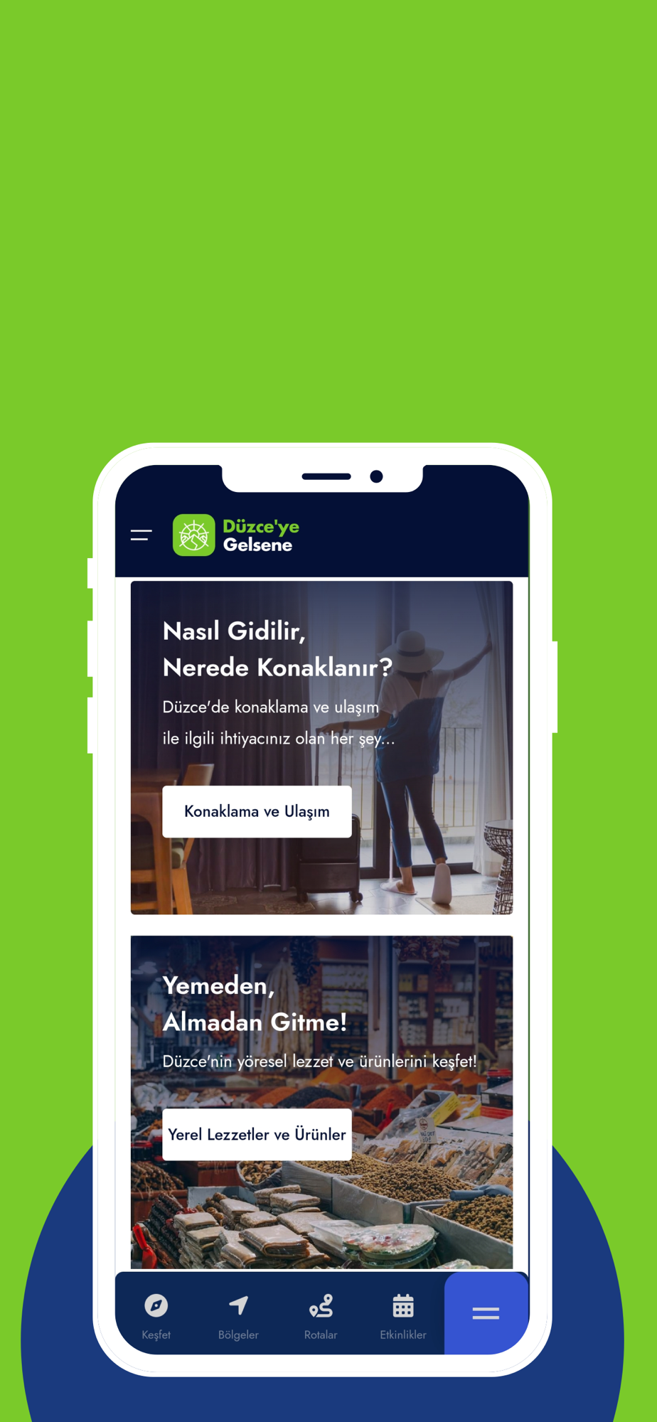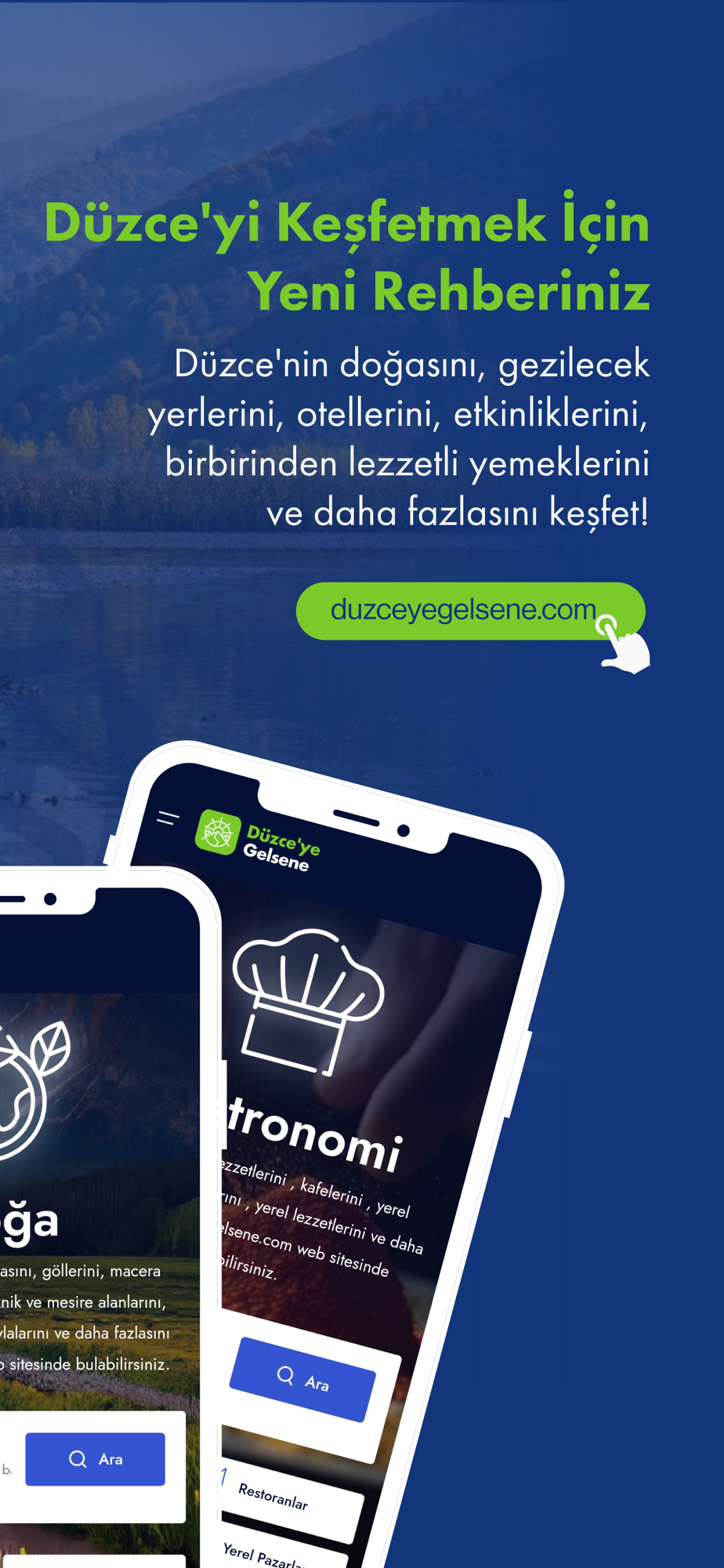 Düzce'nin doğasını, gezilecek yerlerini, otellerini, etkinliklerini, birbirinden lezzetli yemeklerini ve daha fazlasını Düzce'ye Gelsene uygulaması ile keşfet!