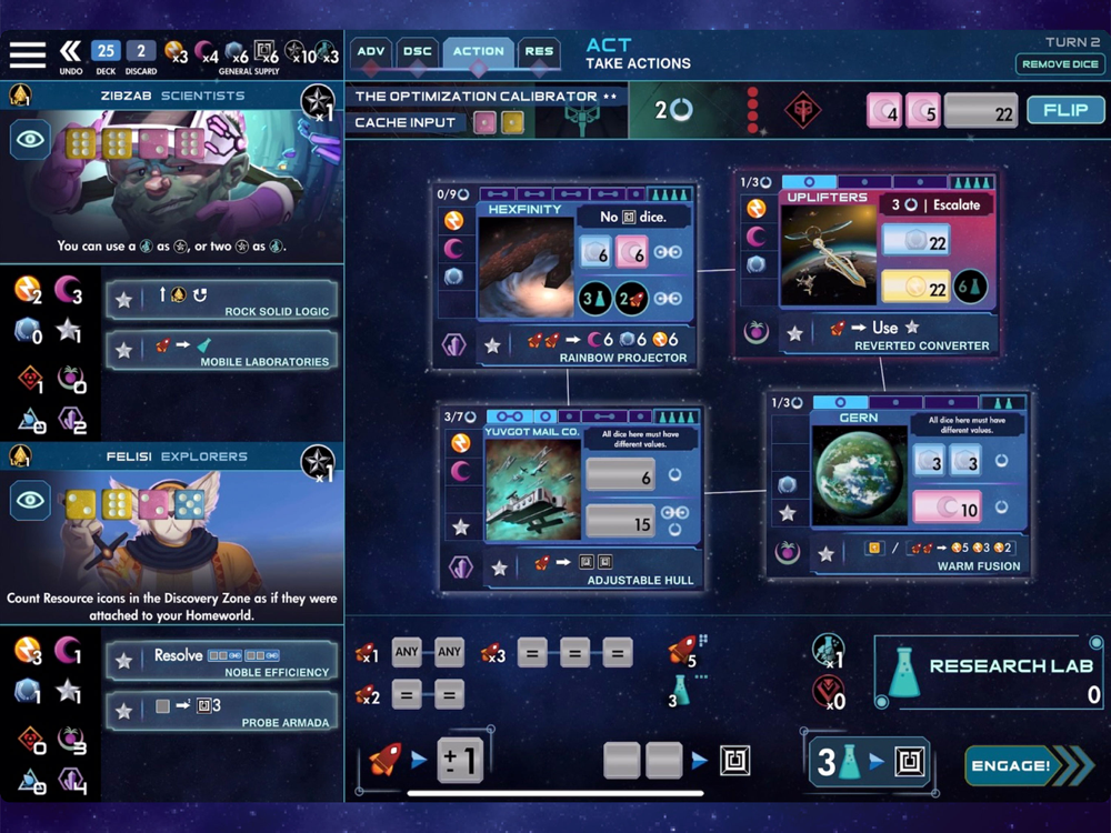 Each time, build a new civilization (or two) by combining a Homeworld and Society. Each Homeworld has a unique ability, starting tech, and milestone. Each Society has a unique ability, 3 milestones, and a unique tech that powers up the more milestones you achieve.