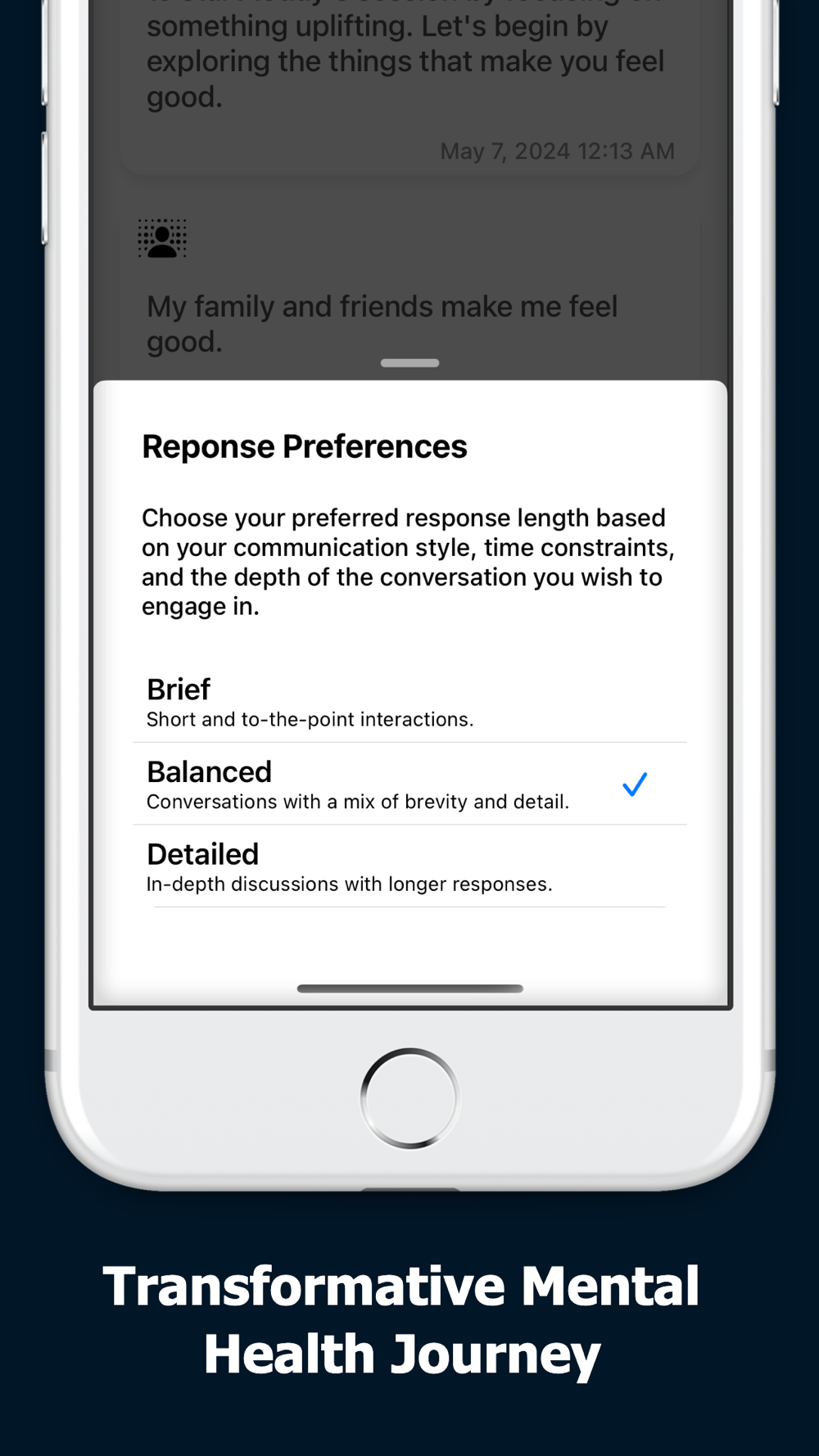 Embrace the transformative power of AI Mental Health as you embark on a journey of self-discovery and growth. Our app is more than just a tool for managing mental health, it's a companion that walks alongside you, offering guidance and encouragement every step of the way. You'll find it easier than ever to prioritize your well-being and cultivate a positive mindset.