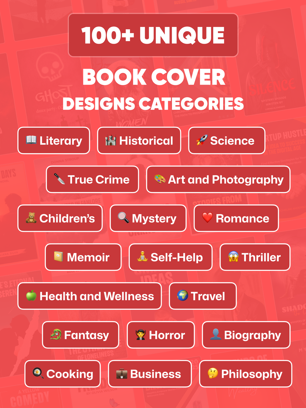 With BookCoverify, you have access to a vast library of editable templates designed for every type of book imaginable. Whether you're publishing an ebook, an audio book, or a physical copy, our app has you covered. Choose from a variety of genres and styles to find the perfect template for your masterpiece.