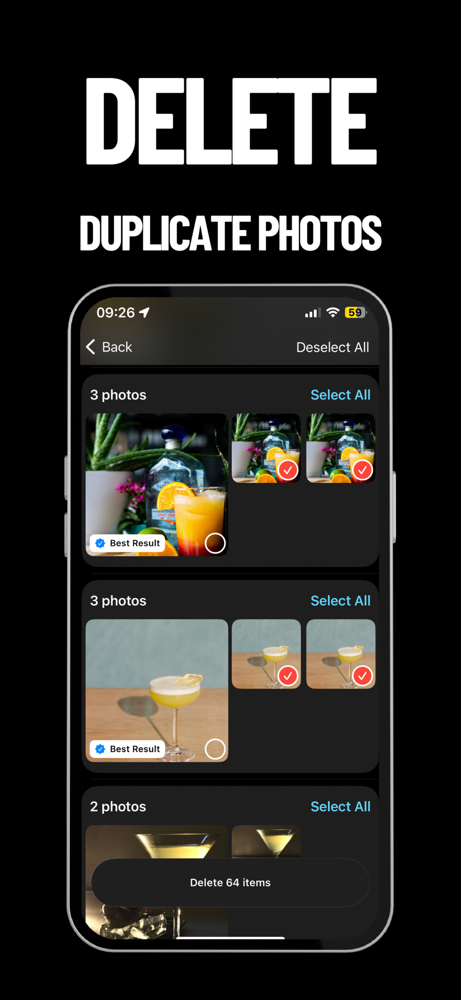 Easily select and delete unwanted photos and duplicates.