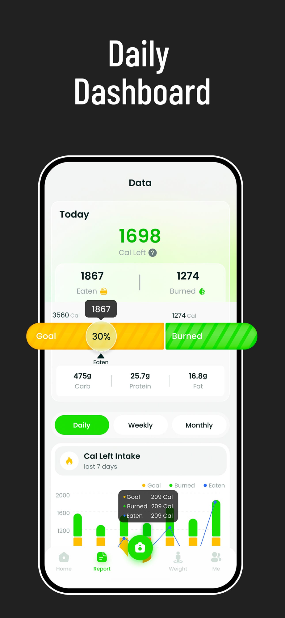 - New! Calorie Expenditure Tracking: Monitor both intake and burned calories for holistic health insights.