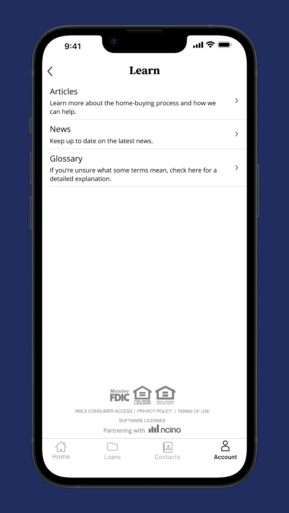 • Educational Tools: Increase your mortgage IQ with educational resources right in the app. Includes a glossary of terms, updated news feeds, and insightful articles on loan topics to enhance your borrowing confidence.