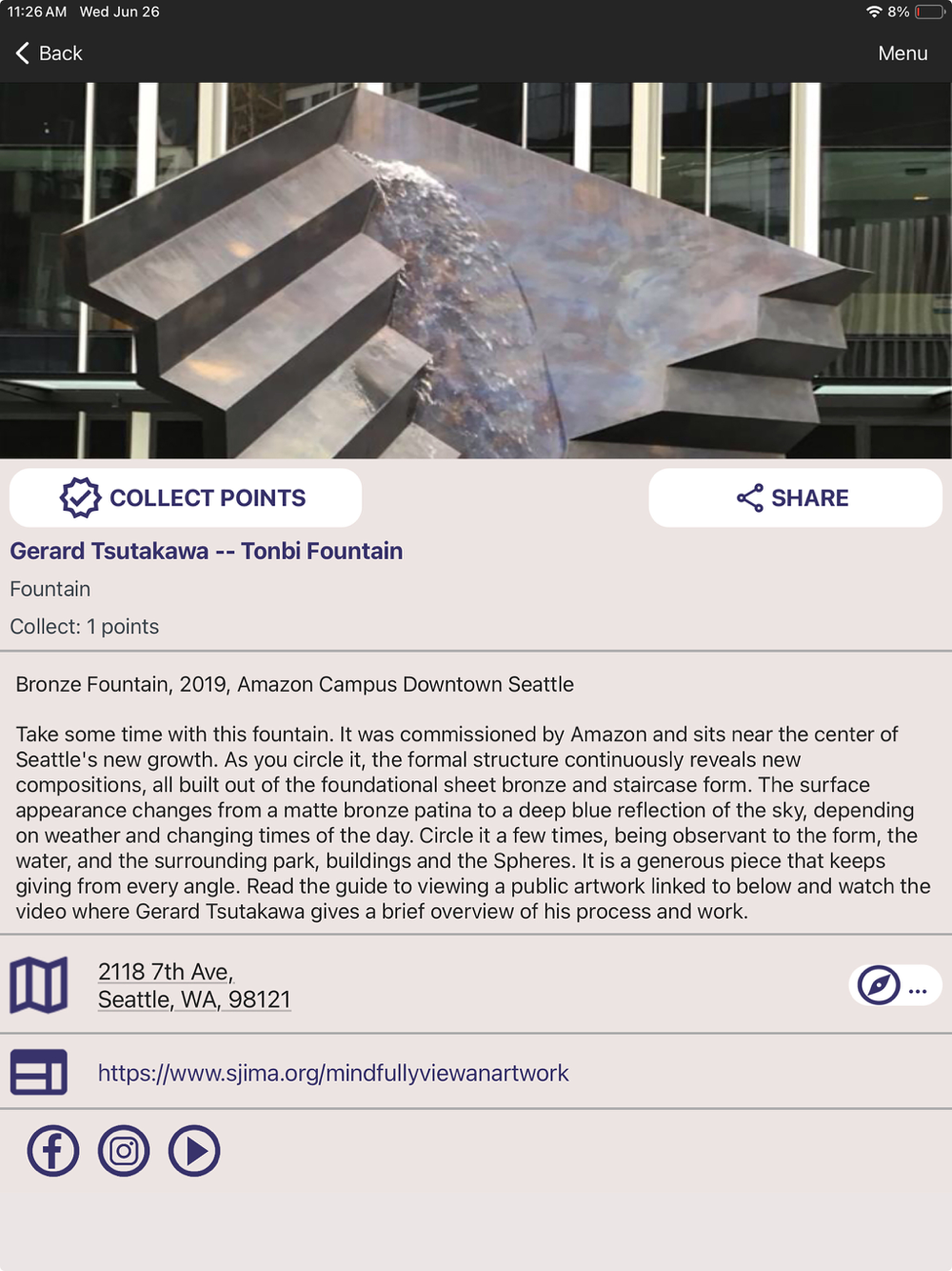 Use this app to explore a curated selection of the iconic public artworks of George and Gerard Tsutakawa. The top two point collectors will receive a print by George Tsutakawa.