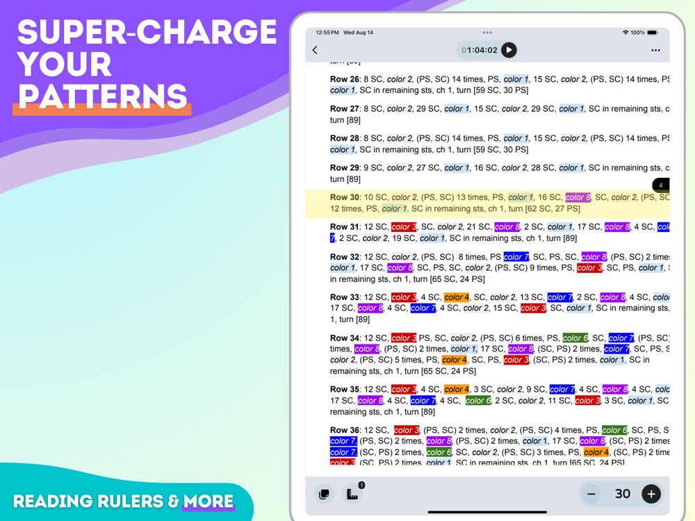 ■ Pattern Viewer with Rulers: View patterns alongside timers, row counters & notes