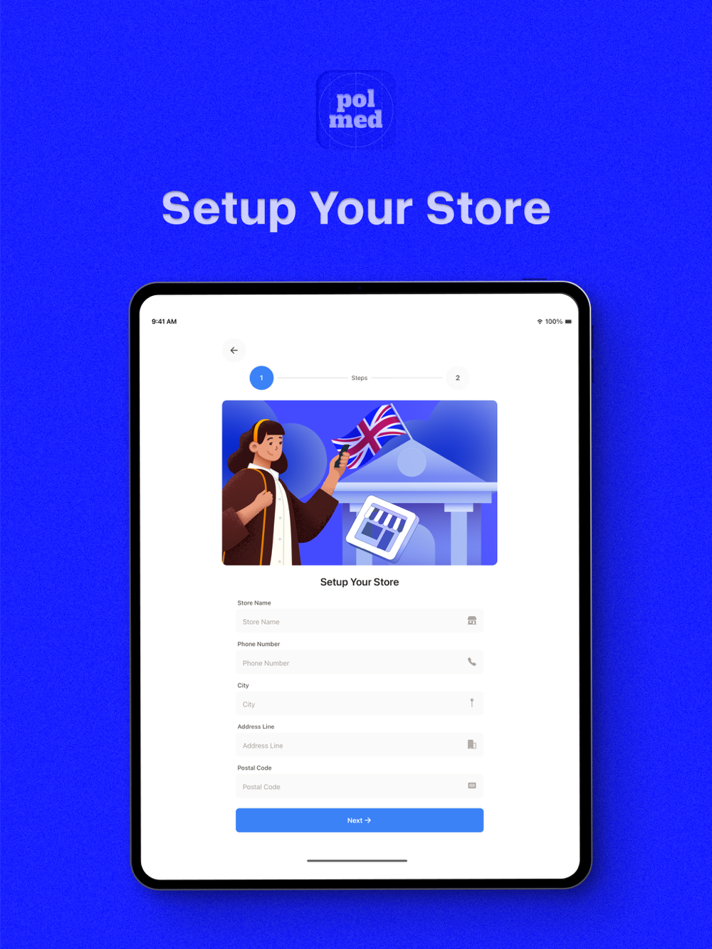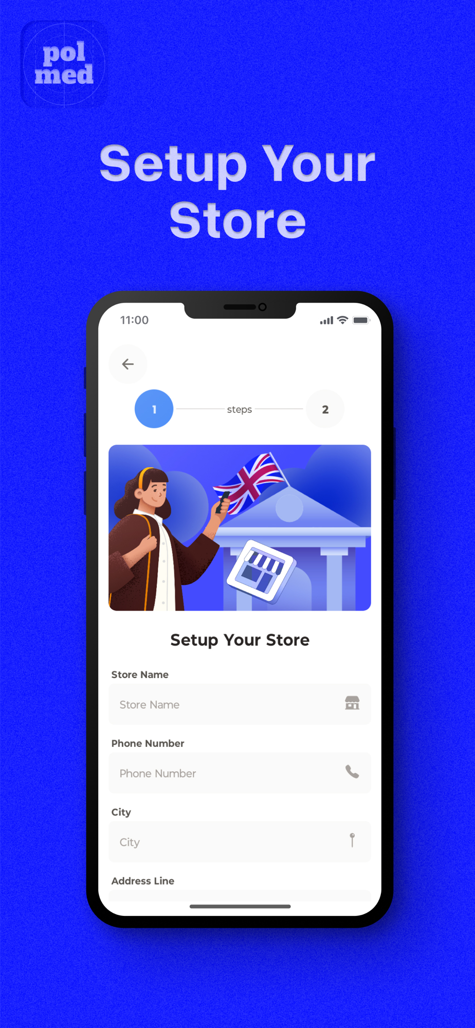Polmed enables you to set up a store account, view listed products, add desired items to your bag, and place and track your orders.