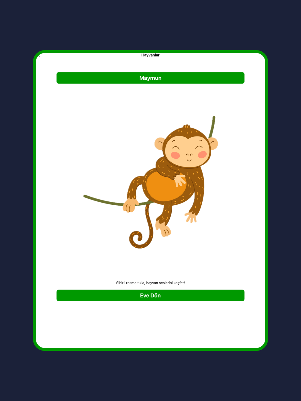 Çocuğunuzla birlikte hayvanların büyüleyici dünyasını keşfetmeye çıkın. 'Hayvan Seslerini Öğreniyorum' uygulaması, çocukların çeşitli hayvan seslerini öğrenmelerini ve tanımalarını sağlayarak doğal dünya hakkındaki anlayışlarını zenginleştirmek için tasarlanmıştır.