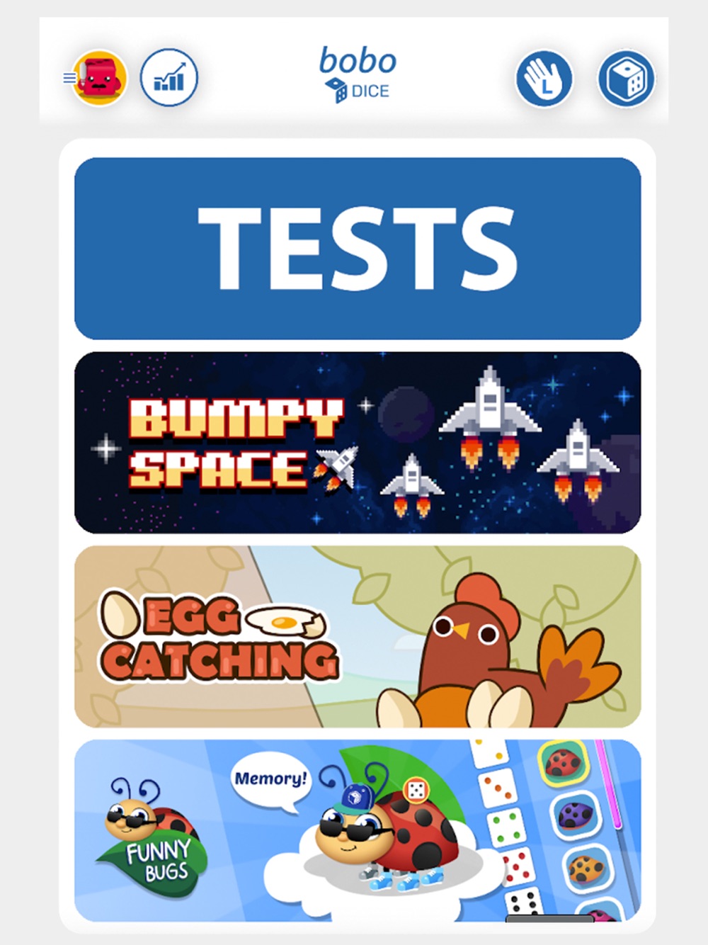 This innovative app features various games and fingers training controlled by connected dice equipped with a 3D motion sensor and Bluetooth connectivity.