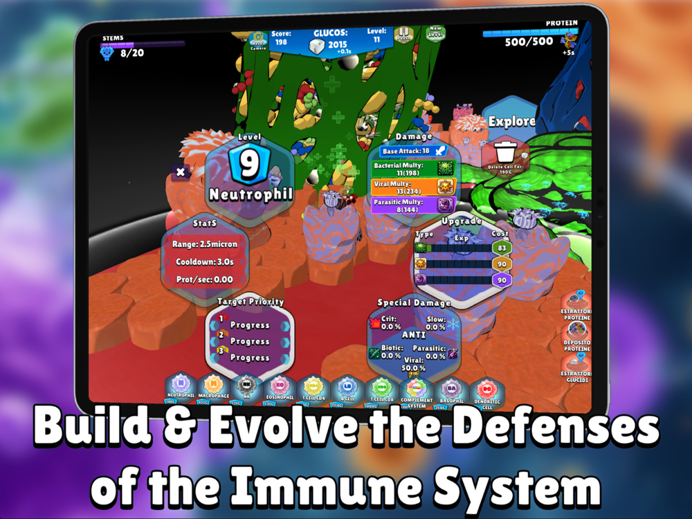 Experience and Genetic Enhancements: Gain experience to unlock advanced defensive capabilities and permanent genetic upgrades, enhancing your ability to combat pathogens.