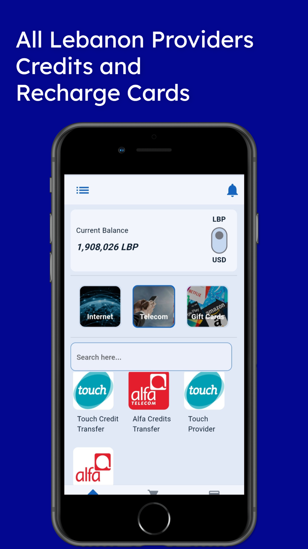 This app enables you to easily buy a variety of gift cards and Lebanese telecom provider services like alfa and touch.