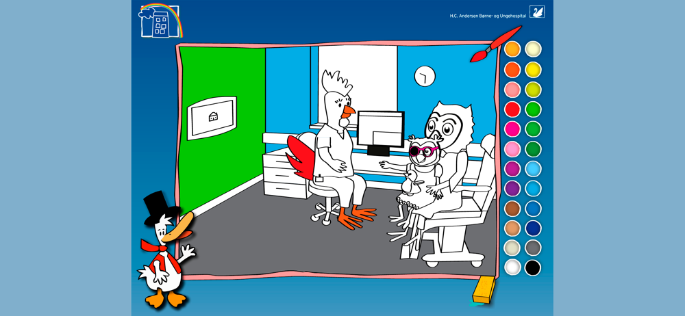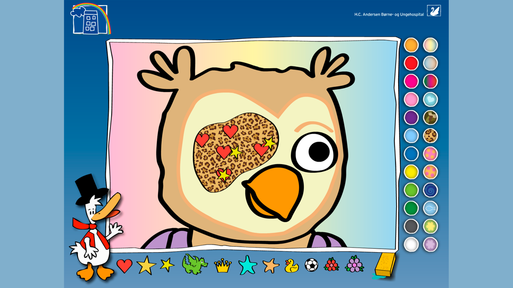 ”HC And - Øjenafdelingen” er udviklet i et samarbejde mellem Øjenafdelingen, H.C. Andersen Børne- og Ungehospital, Odense Universitetshospital, børn og deres familier og 10:30 Visuel Kommunikation.