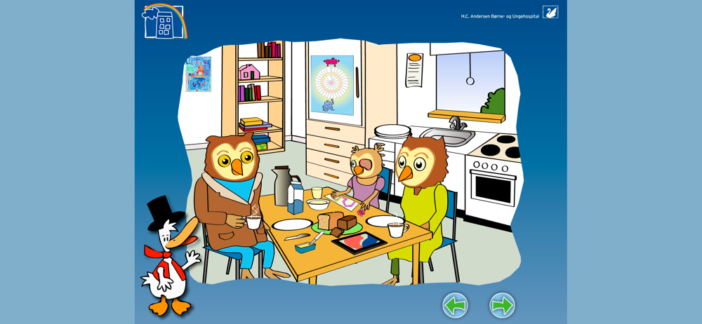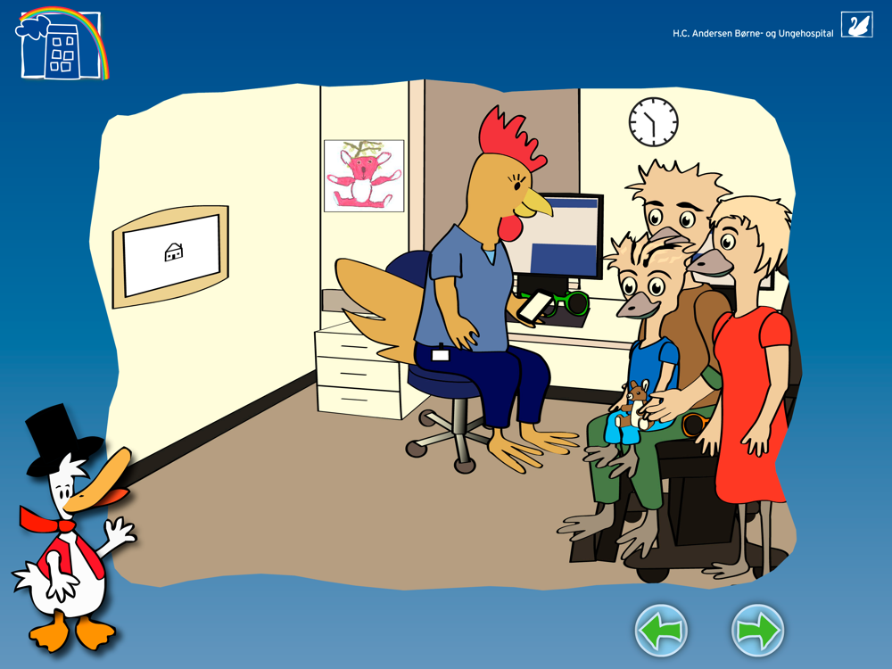 Børn i denne aldersgruppe lærer og erkender ved leg og konkret information. Indlagte børn kan hurtigt blive “fyldt op” med en masse information. Derfor er HC And bygget op af korte sekvenser i børnehøjde, så “nye” kan starte her.