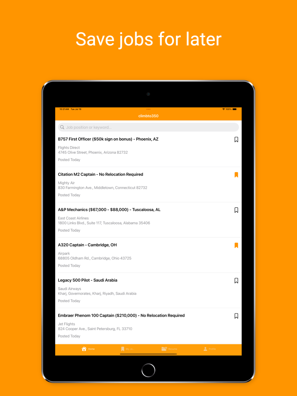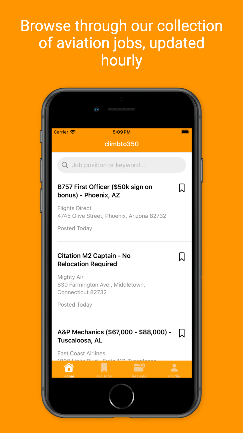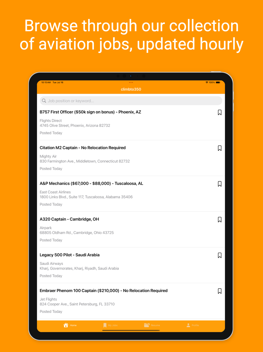 Download the climbto350 app today and start your search for your next aviation job.