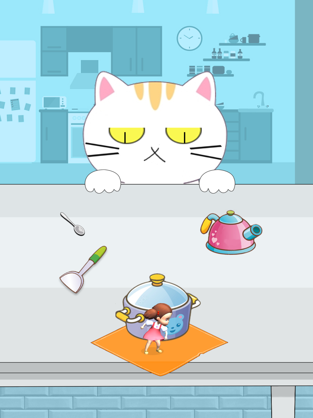 Stop when a cat appears: Tap to halt and avoid being caught.