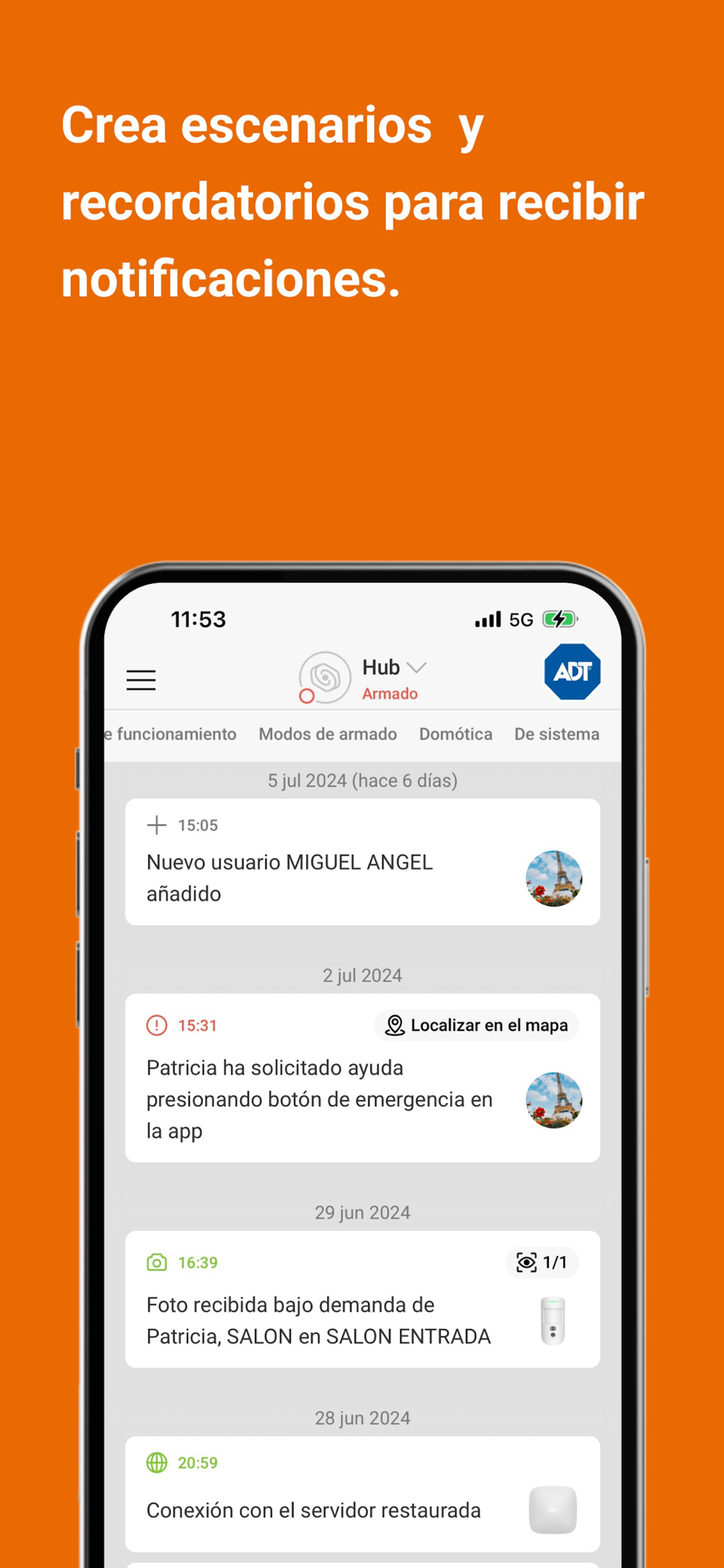 La app Yoigo ADT Alarma protege tu casa o negocio y te permitirá controlar tu seguridad. Podrás conectar o desconectar tu alarma desde cualquier lugar, visualizar lo que ocurre, crear escenarios, solicitar ayuda a través del botón de pánico y activar recordatorios para que tu instalación siempre esté protegida. Además, si surgen problemas, el sistema de seguridad activará inmediatamente las sirenas, te avisará a ti y a la Central Receptora de Alarmas de ADT que dará aviso inmediato a la policía.