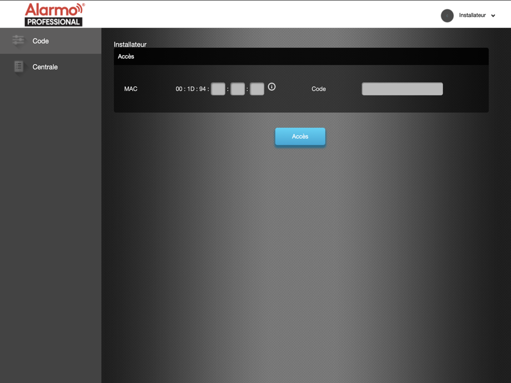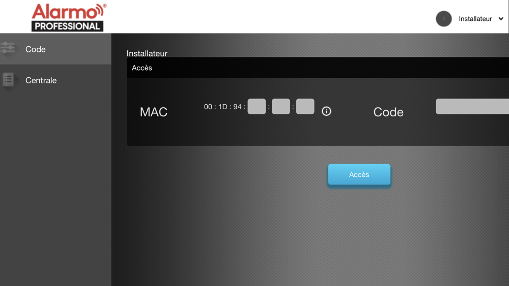 Pour activer l'application Alarmo Professional, accédez au site Elkron dans la zone dédiée au système Alarmo et demandez les identifiants pour créer votre compte.