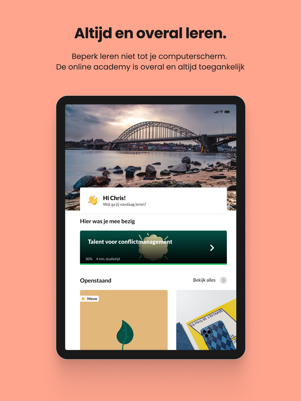 Start met de volgende leeractiviteit uit je Learning Playlist, of ga in je e-learning verder waar je gebleven was. Even tijd over? Volg dan de microlearning die je nog op de planning hebt staan. Leren kan altijd en overal!