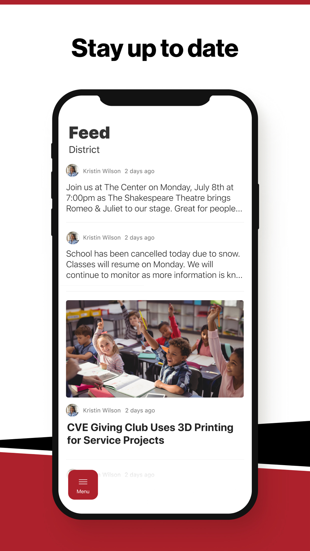 In Feed and News, you’ll find updates from the administration about what’s going on in the district right now to keep you informed with the latest announcements.