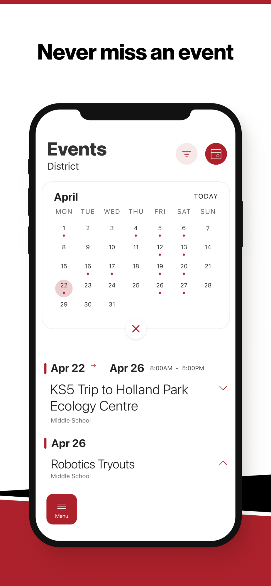 NEVER MISS AN EVENT