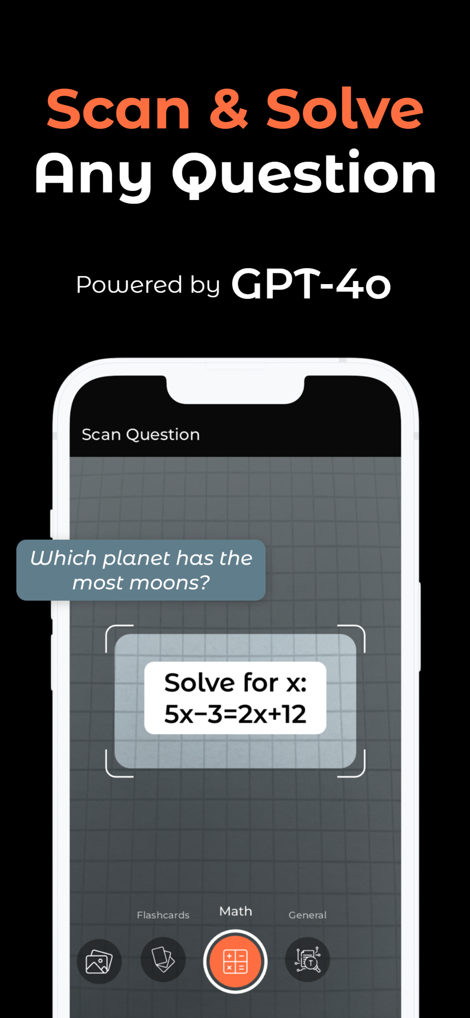 General Question Solver: Have a question outside of math? No problem! Ask our AI anything, and receive precise, reliable answers instantly. Whether it's science, history, or general knowledge, Homework AI is your go-to assistant.