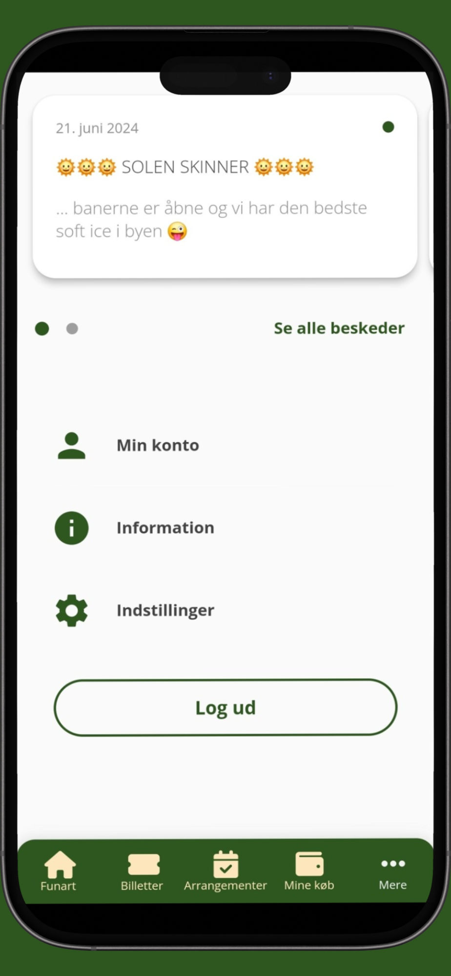 Har du allerede oprettet en konto i Fun Arts billetshop, kan du bruge de samme oplysninger i appen og få adgang til dine billetter og sæsonkort med det samme.