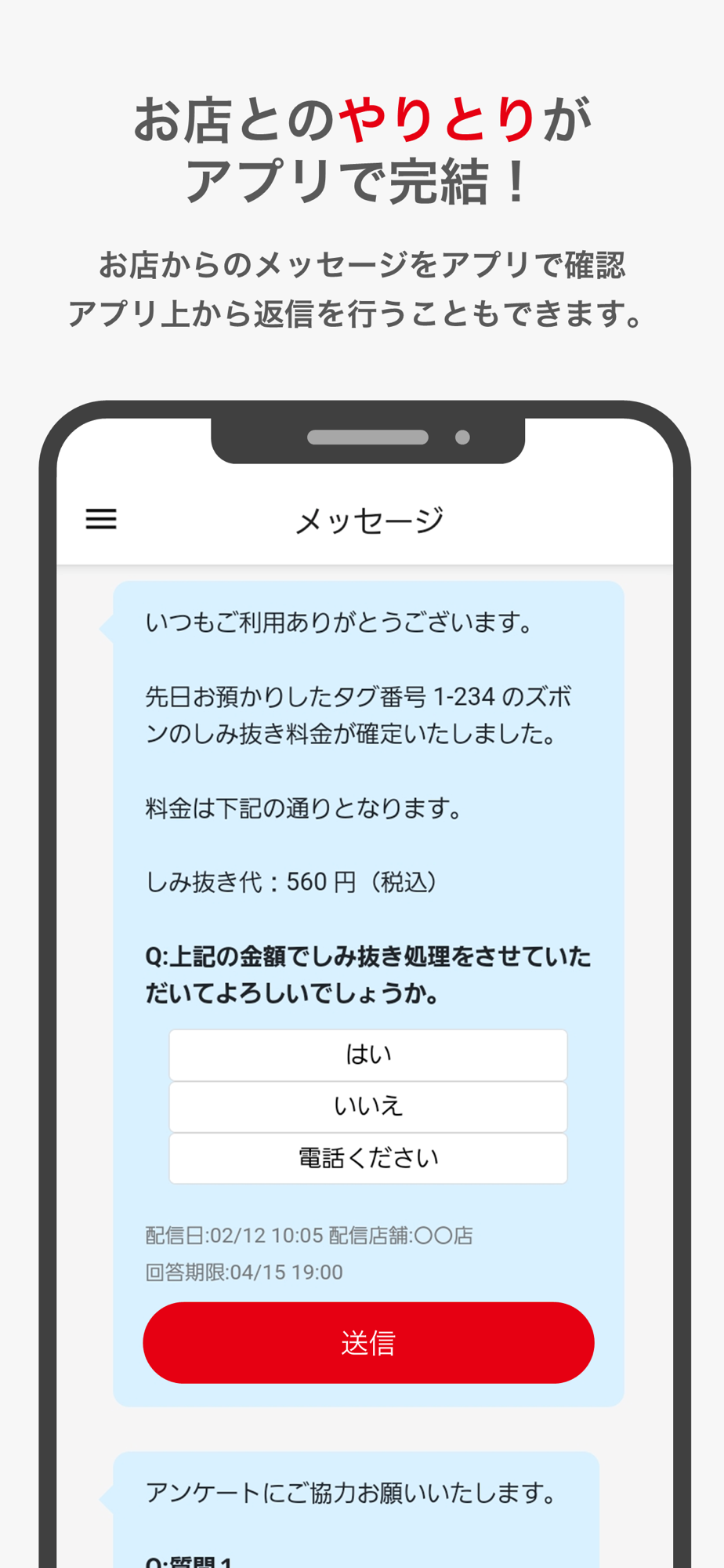 クリーニング店からのメッセージを閲覧できます。
