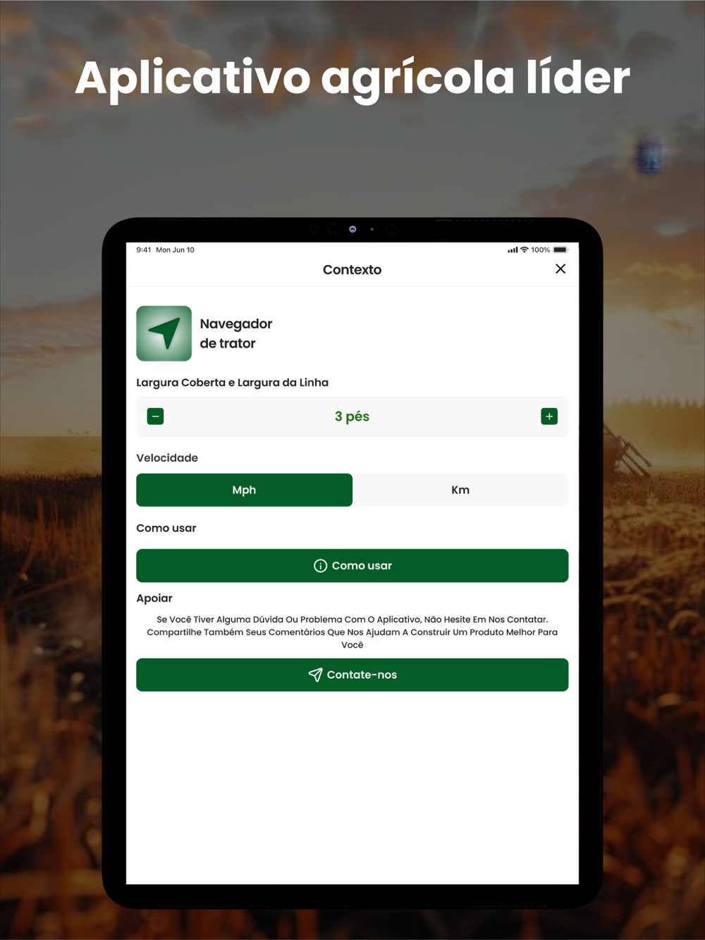 Nosso aplicativo foi projetado pensando no agricultor. Ele é fácil de usar, com uma interface simples que simplifica tarefas complexas. Você não precisa ser um especialista em tecnologia para usar nosso aplicativo – basta baixá-lo, configurá-lo e começar a melhorar suas operações agrícolas imediatamente. A compatibilidade com uma ampla gama de tratores e equipamentos agrícolas significa que você pode integrar nosso aplicativo sem problemas no seu fluxo de trabalho existente.
