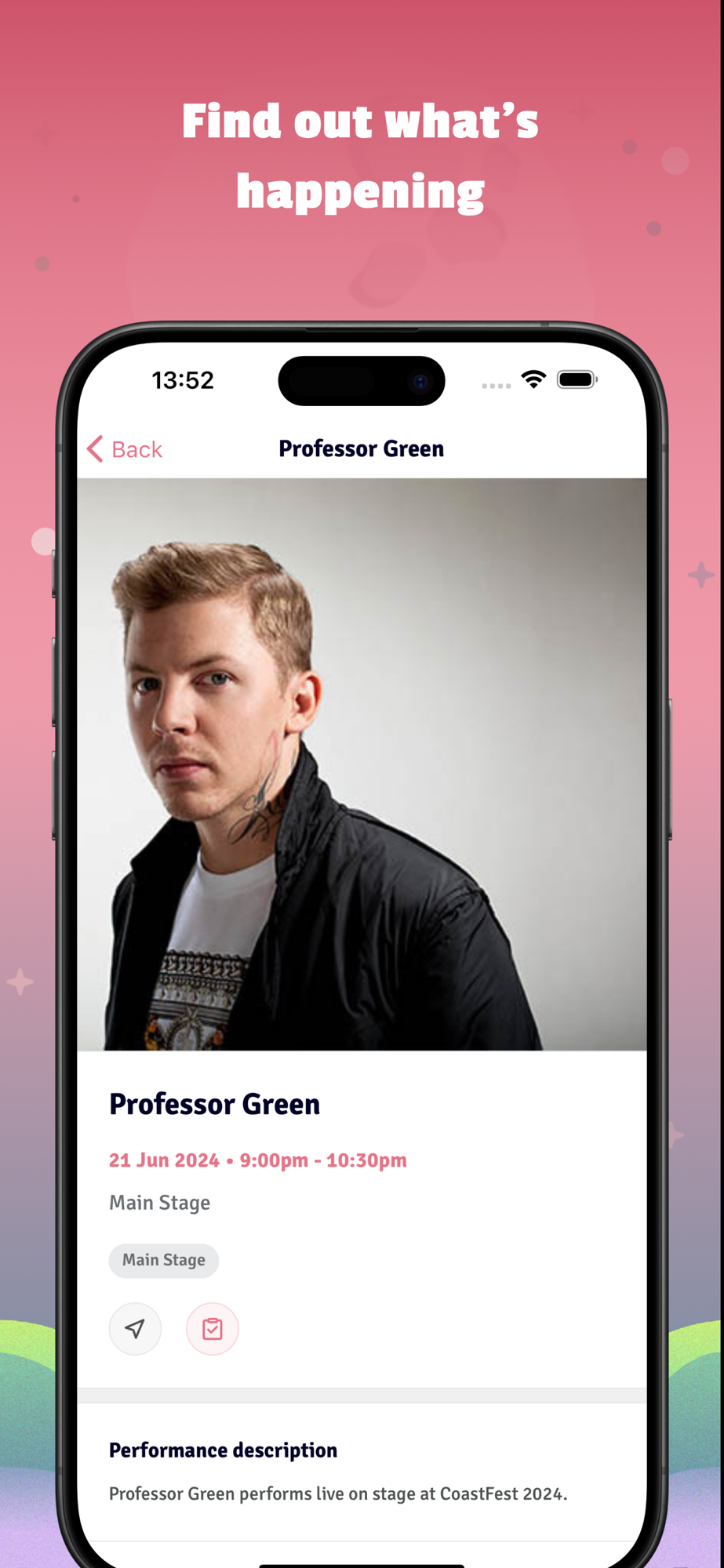 Download and register before you arrive to make the most of your festival experience. You’ll have access to line-ups, latest announcements, special offers and more all in one place. Create your own custom schedule and get automated reminders before your favourite artists perform. Use the interactive map to find your way around the festival site and learn more about everything the festival has to offer. Receive notifications and capture your day with our fun custom photo frames to save or share.