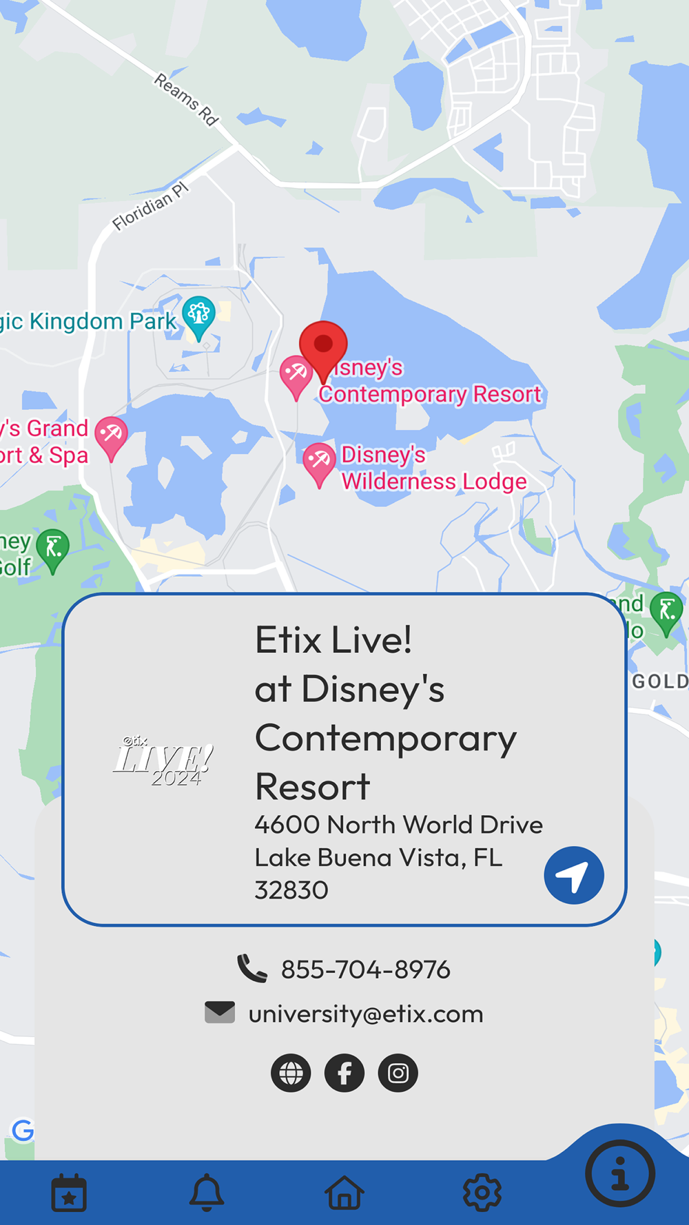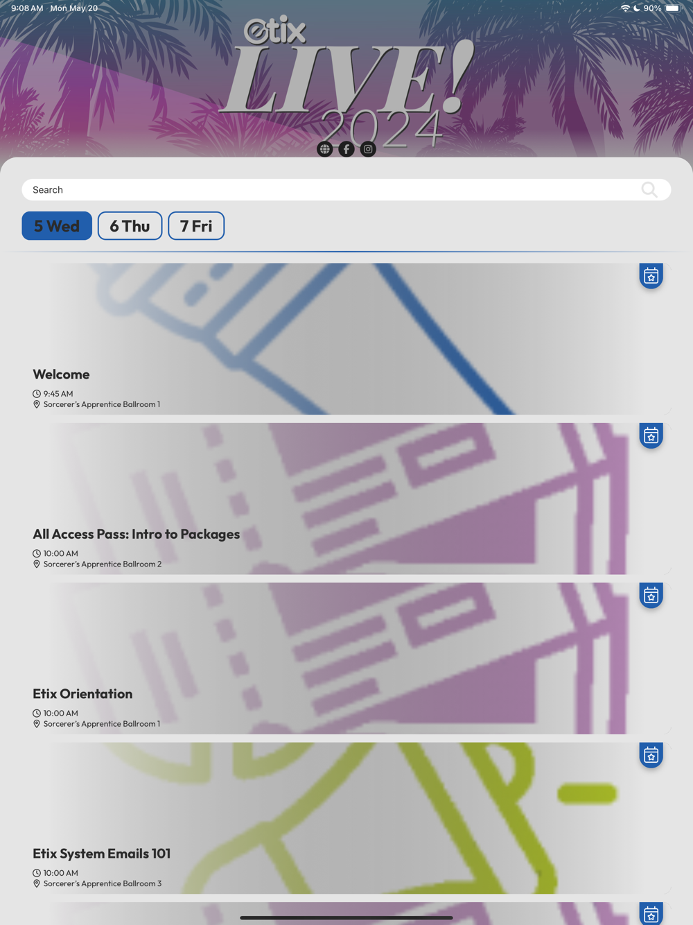 The Etix Live! App provides attendees all conference related information; including, conference schedule, sessions and descriptions, presenter bios, and the ability to create custom attendee schedules.