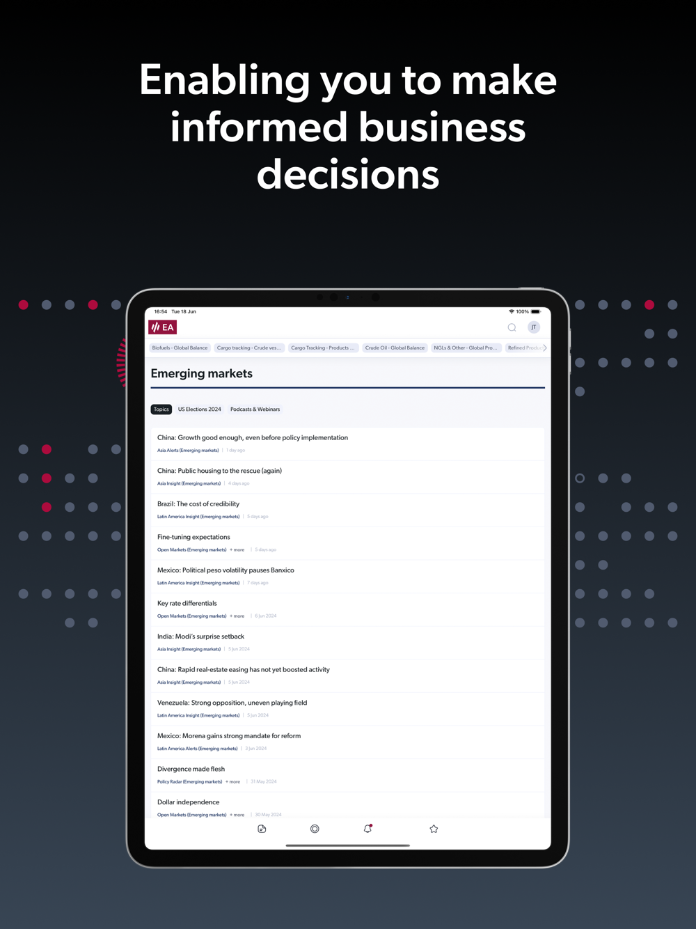 Experience the power of timely, independent research at your fingertips with the Energy Aspects mobile app. Gain instant access to the latest energy market news, in-depth analysis, and expert insights from a leading global research organisation.