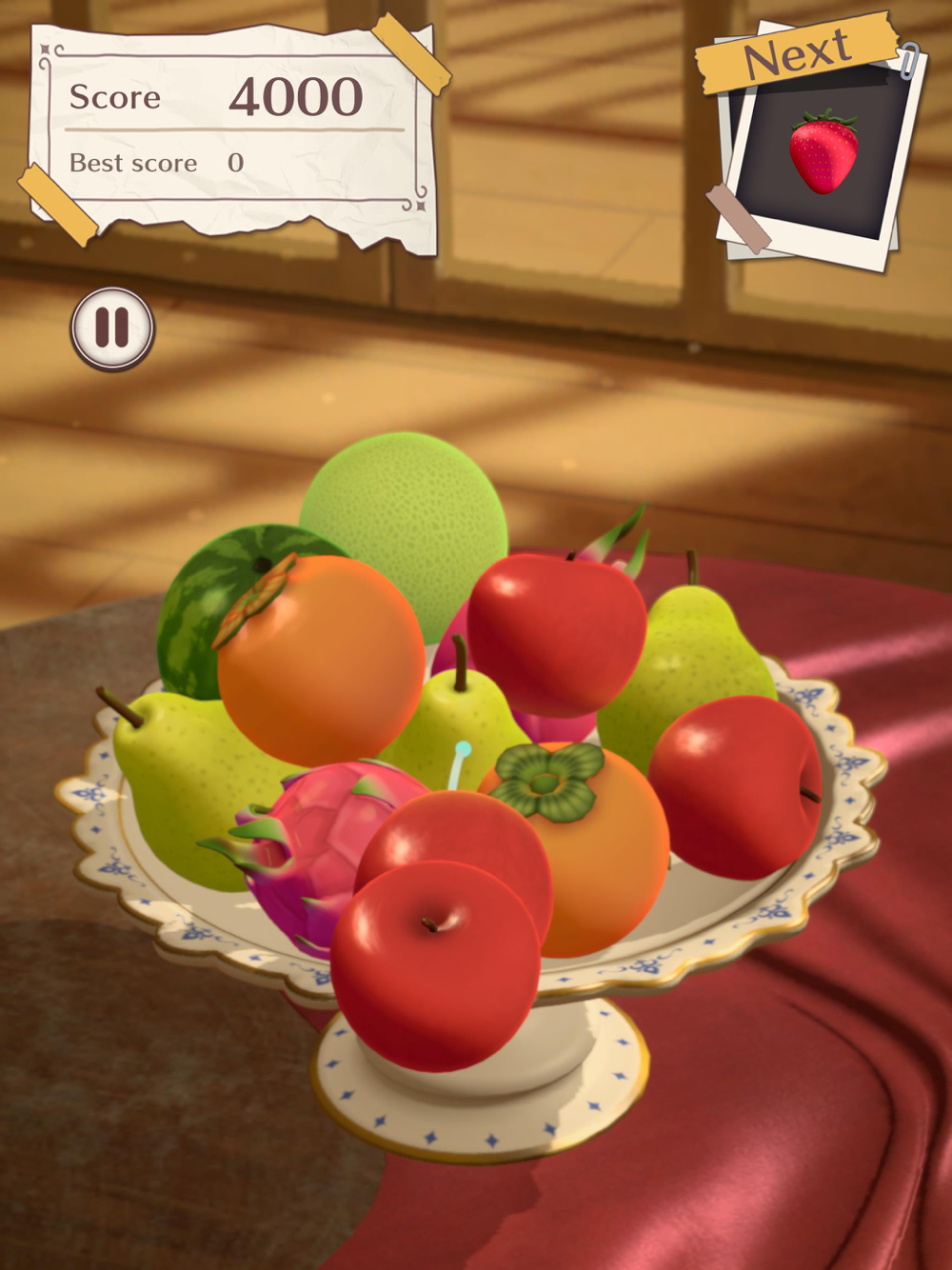 フルーツを投げ入れて、お皿に積み上げていくだけ!
