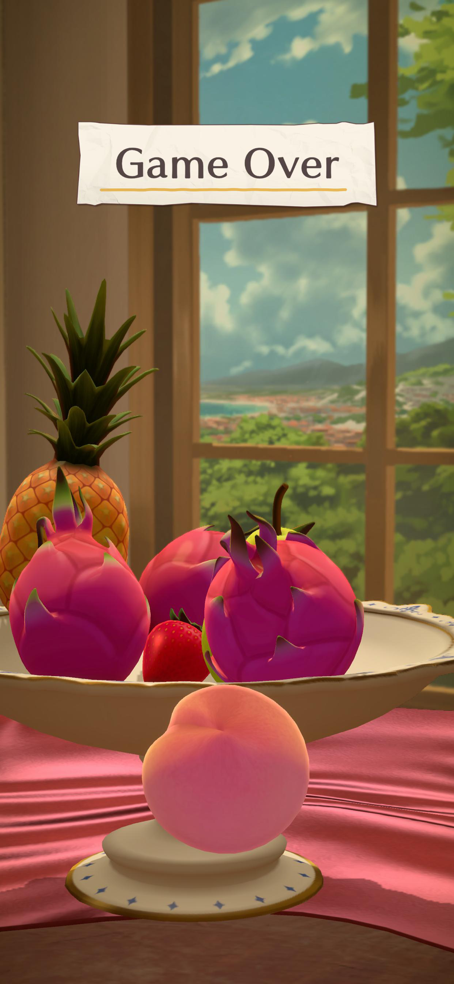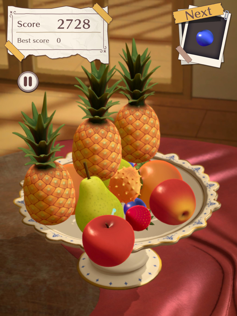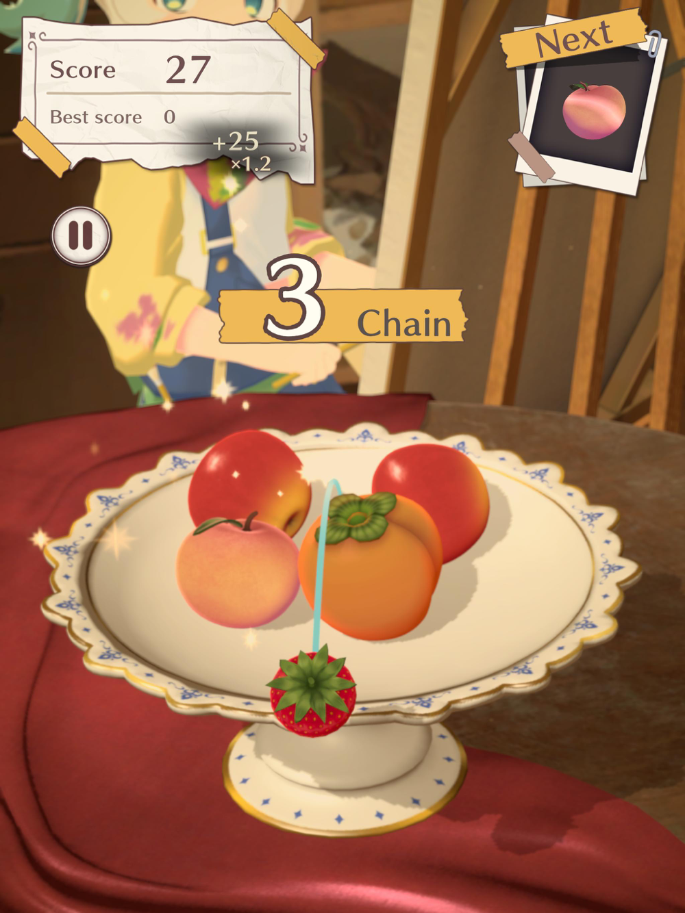 フルーツがお皿から落ちるとゲームオーバー!