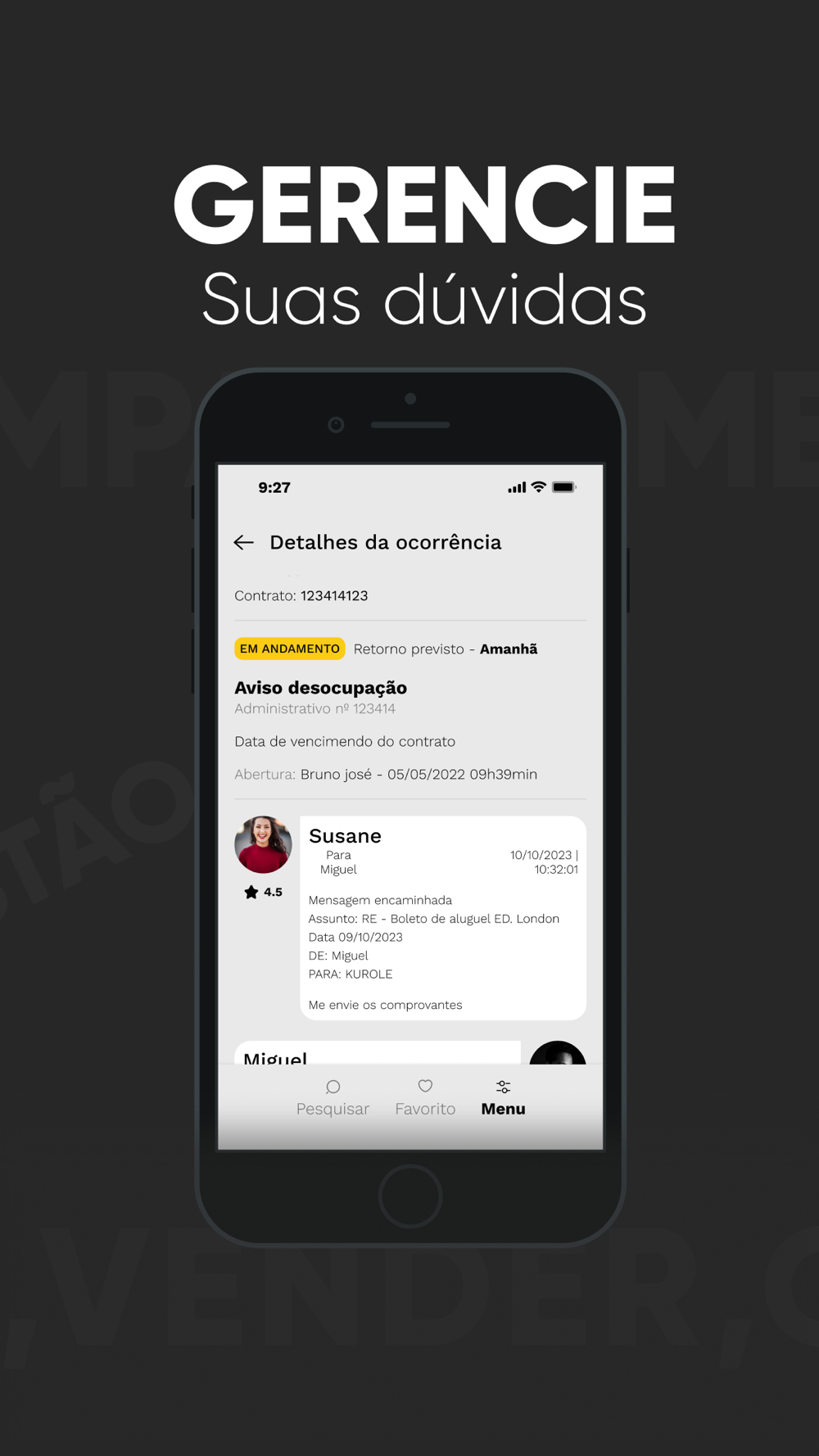 Acesso ao analítico do aluguel, boleto, documentos, ocorrências dentre outros.