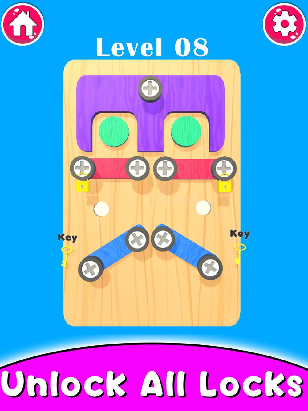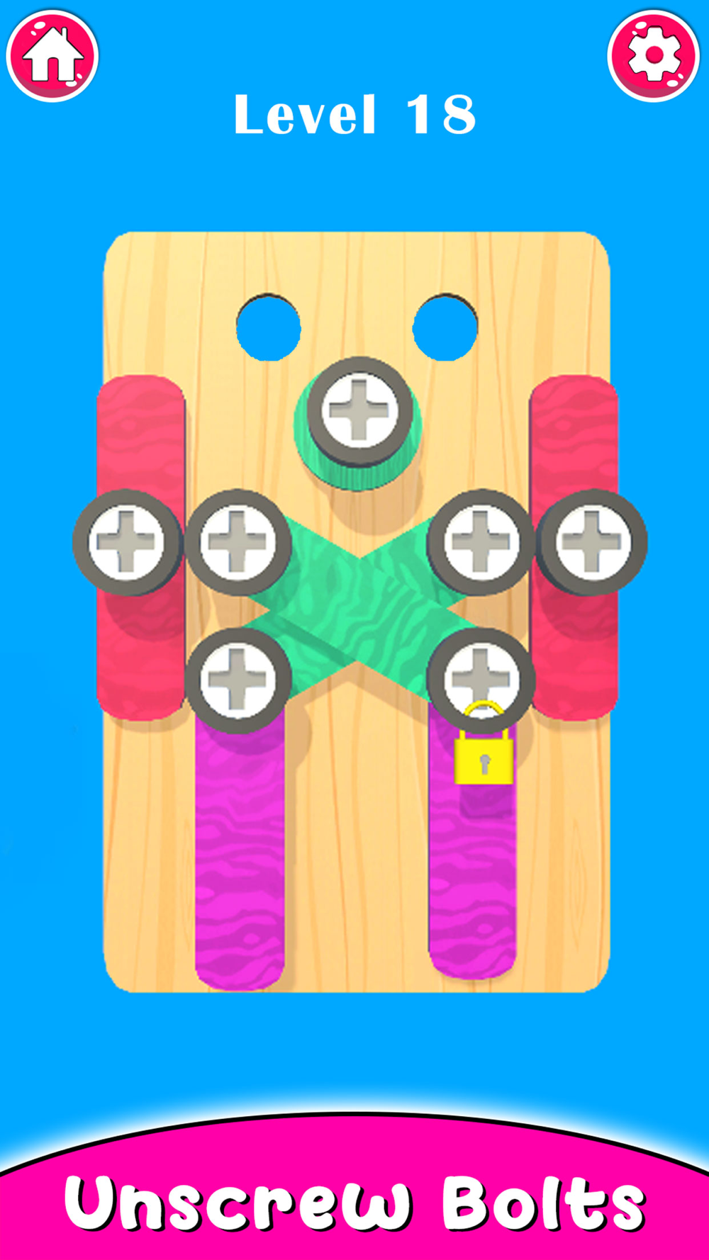 • Solve Bolts and Screw Puzzles by freely twisting, unscrewing, and screwing pins.
