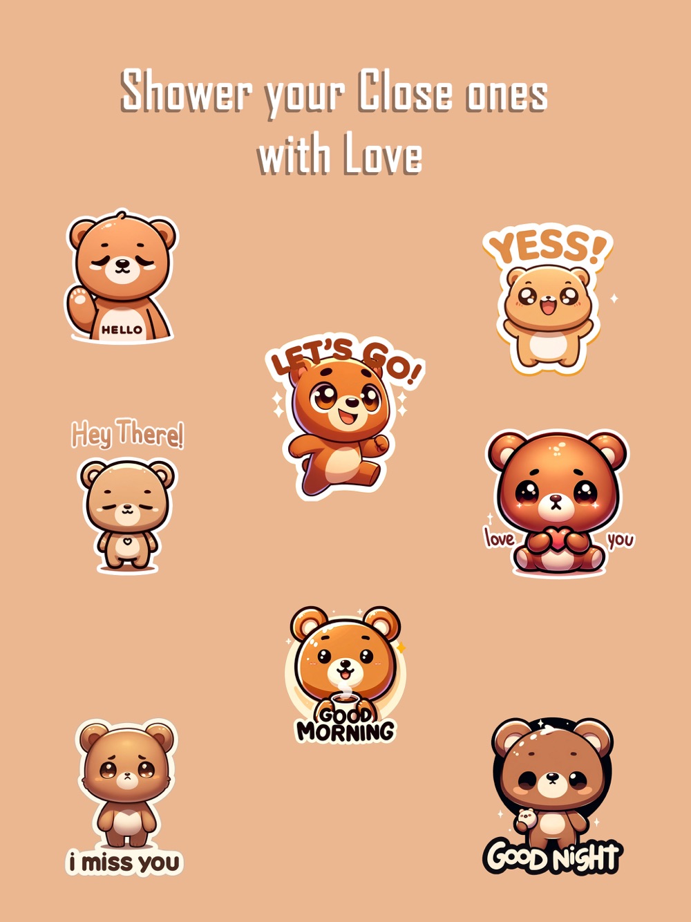 Meet Benny the Bear and his delightful sticker pack, "Benny the Bear, Cute Stickers"! This collection is perfect for adding a touch of charm and fun to your conversations. Benny’s playful and adorable stickers are designed to bring joy and express your emotions in the most delightful way.