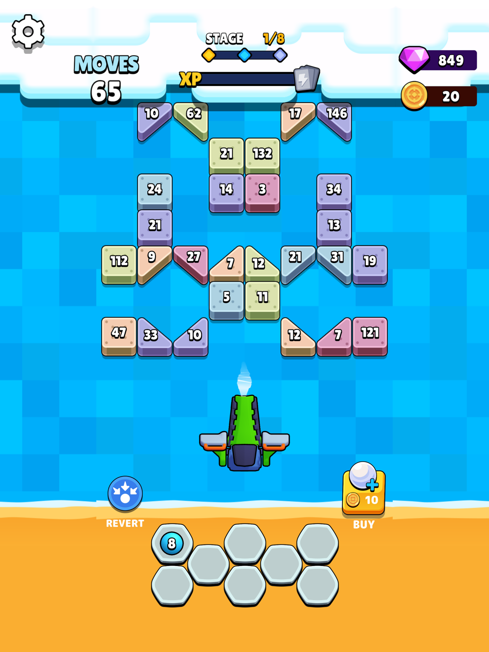 As you progress through Mergi, you'll be faced with the enticing choice of selecting from three different cards between levels. These cards offer diverse rewards and enhancements, adding an extra layer of strategy and excitement to your gaming experience. The satisfaction of watching your upgraded cannons shatter bricks and clear levels is unmatched, making every moment in the game both engaging and rewarding.