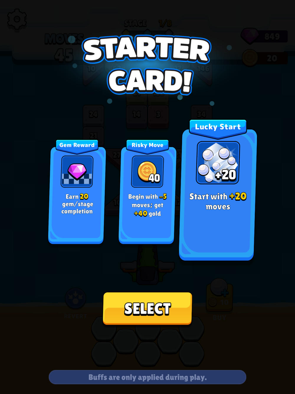 Strategic Card Choices: Select from three different cards between levels for unique rewards and enhancements.