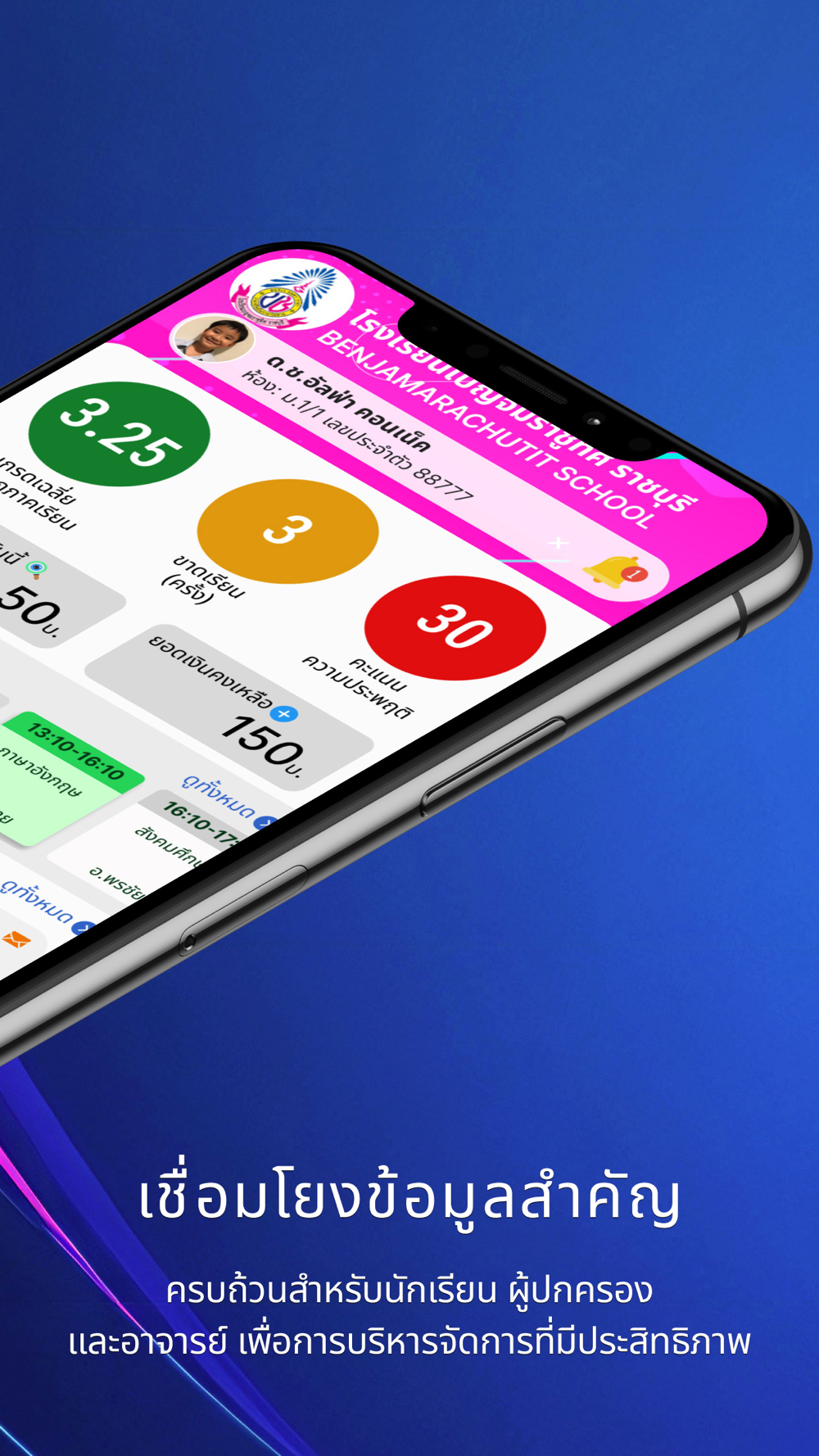 1. ระบบแสดงข้อมูลสำคัญสำหรับนักเรียน ได้แก่ ข้อมูลเกรดเฉลี่ยสะสม จำนวนวันที่ขาดเรียน คะแนนความประพฤติ