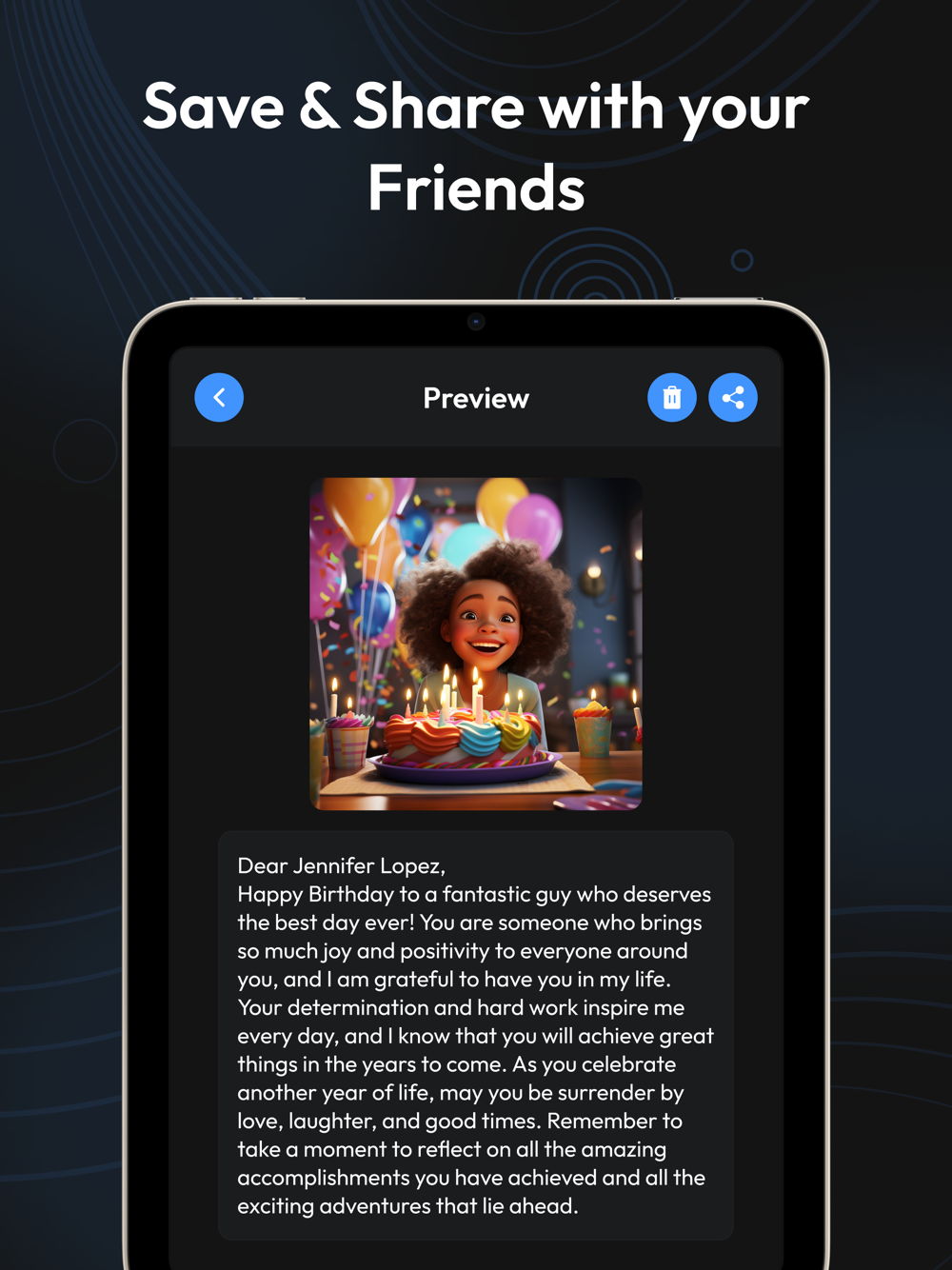 Are you tired of the same old cliched birthday messages? Want to make your loved ones feel truly special on their big day? Happy Birthday AI Wisher is here to help! With just a few taps, you can create beautifully crafted, unique birthday greetings that will make your friends, family, and colleagues feel celebrated and cherished.