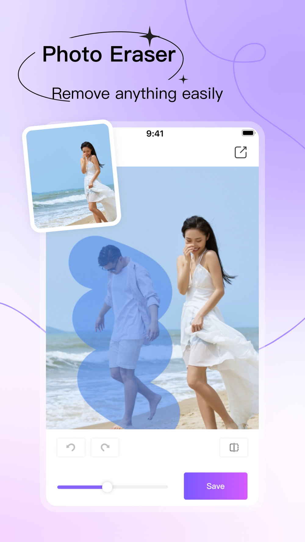 Magic Touch Eraser: Effortlessly erase unwanted elements like bystanders and blemishes from your photos with a simple tap.