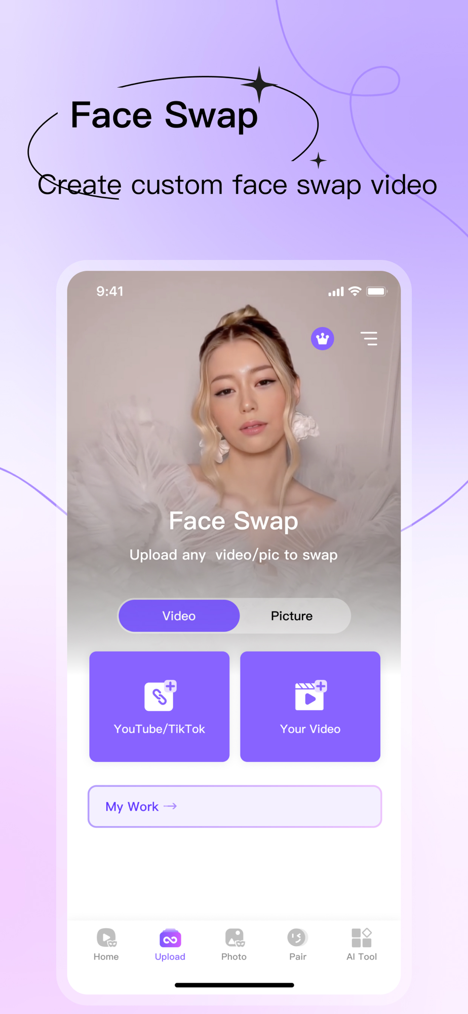 AI-Powered Face Swap: Seamlessly integrate your face into any video, transforming ordinary footage into captivating creations.